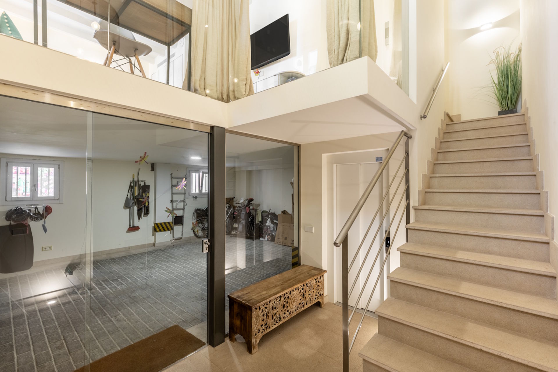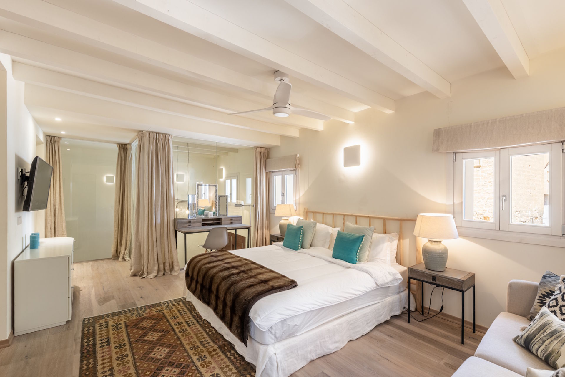 Ein absolutes Highlight ist die spektakuläre Dachterrasse: Hier erwartet Sie ein privater Swimming-Pool mit Jet-Stream sowie ein atemberaubender Panoramablick über die Dächer der Altstadt von Palma – ein perfekter Ort für Entspannung und gesellige Abende.