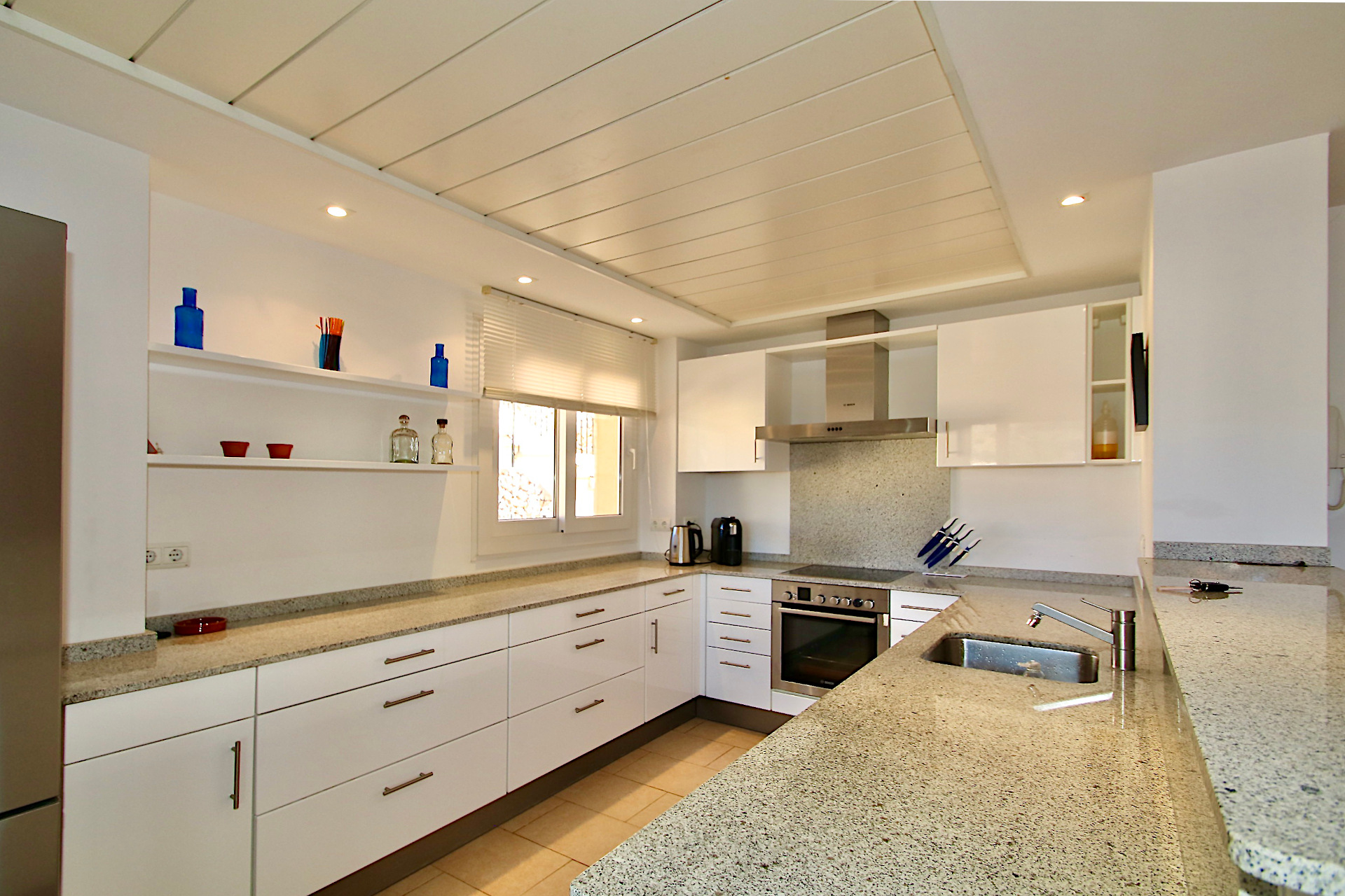 The penthouse has a master bedroom with bathroom en suite as well as two further bedrooms and a bathroom, an open fitted kitchen and a spacious living/dining room with fireplace. From the living room you can access the approx. 40 sqm terrace, from where you can continue to the approx. 105 m2 roof terrace.
