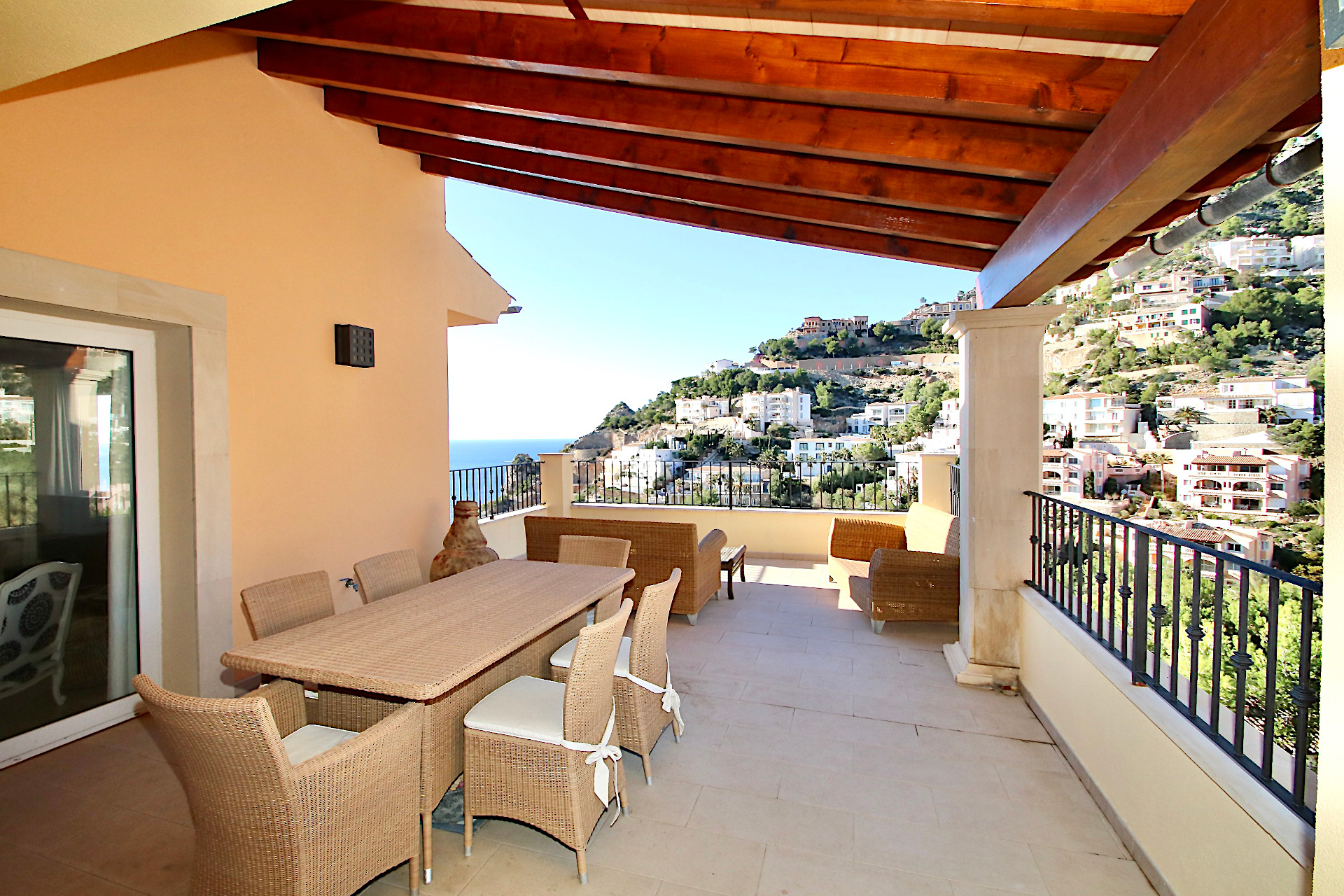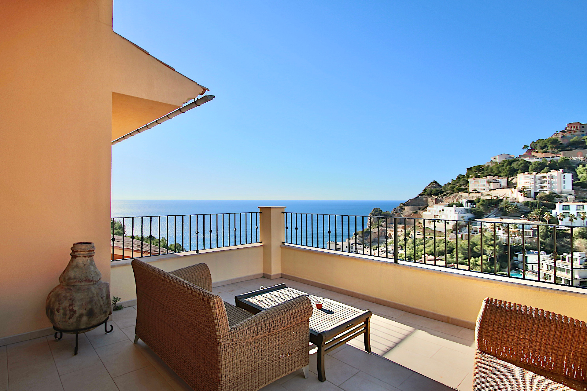 This spacious penthouse is located in a small complex built in 2009. The complex is characterized by its wonderful sunset location and has 2 pool areas. The community is located just a few hundred meters from the marina of Port Andratx. The golf course “Golf de Andratx” or the beach in Camp de Mar are approx. 7 minutes away by car, Palma de Mallorca approx. 35 minutes and the airport approx. 45 minutes.